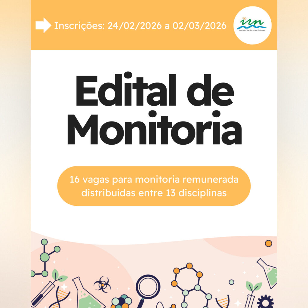 Resultado Final do Edital de Monitoria 2026.1 IRN Resultado Final do Edital de Monitoria está disponível em: http://irn.unifei.edu.br/wp-content/uploads/RESULTADO_FINAL_MONITORIA-_Edital_01-2026_IRN.pdf Prazo para Manifestação de Interesse:até às 17h do dia 16/03/2026 As manifestações de interesse deverão ser enviadas para o endereço de e-mail informado no edital:📧 cenira@unifei.edu.br Acesse o edital para mais informações: http://irn.unifei.edu.br/wp-content/uploads/Edital_Monitoria-2026-1.pdf